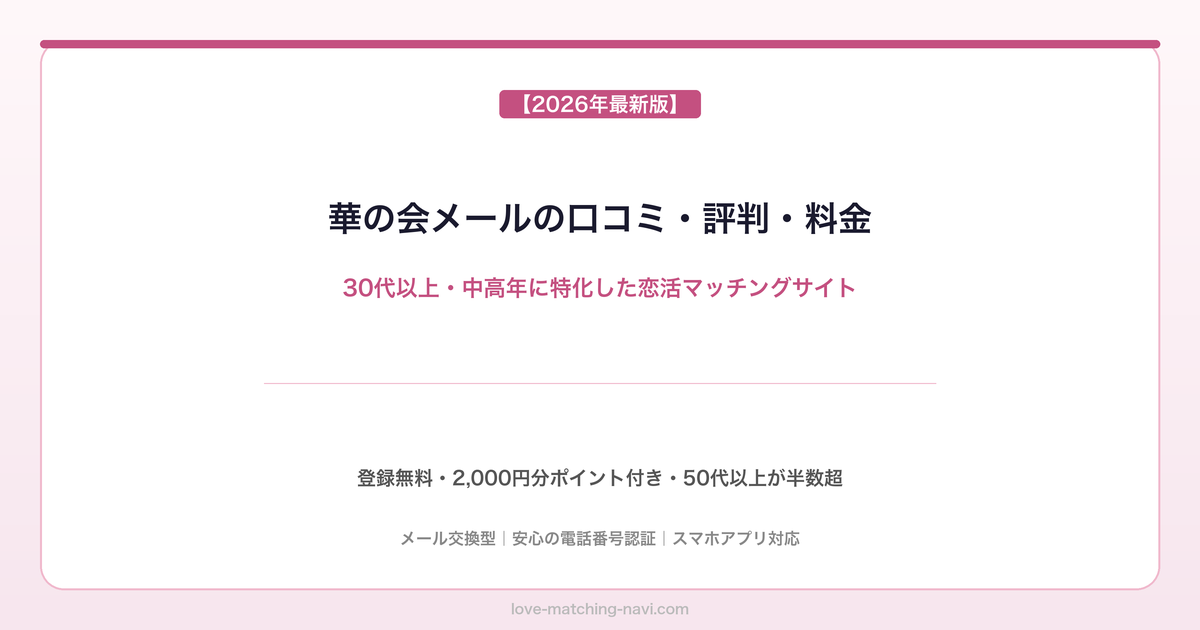 若者向けアプリに疲れた方、同世代と落ち着いた関係を築きたい方、費用ゼロでまず試してみたい方にとって、華の会メールは最もおすすめできる選択肢のひとつです。