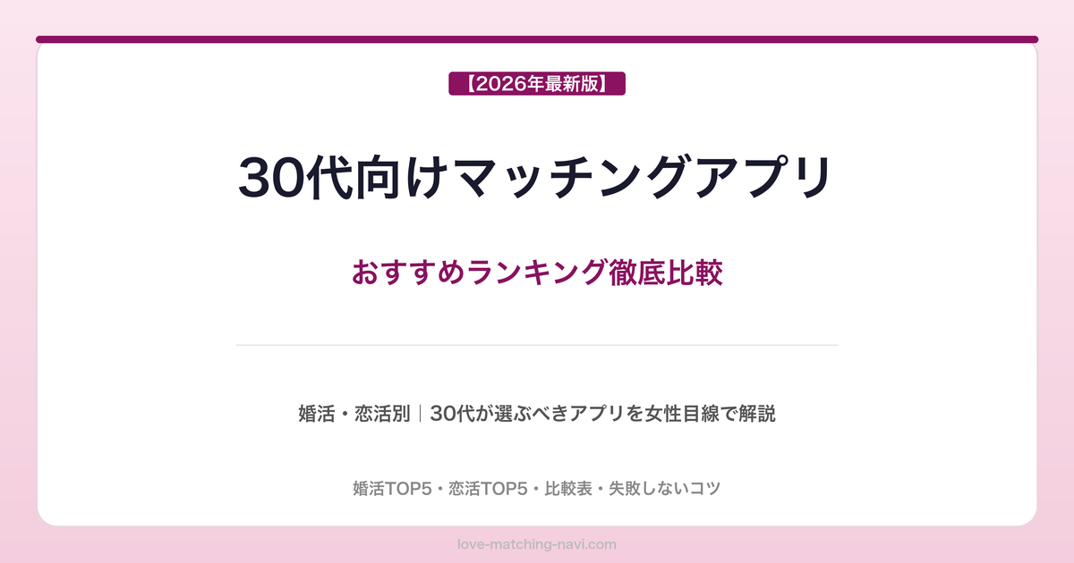 30代向けマッチングアプリの全体像を把握したい方は、マッチングアプリ総合ランキングもあわせてご覧ください。